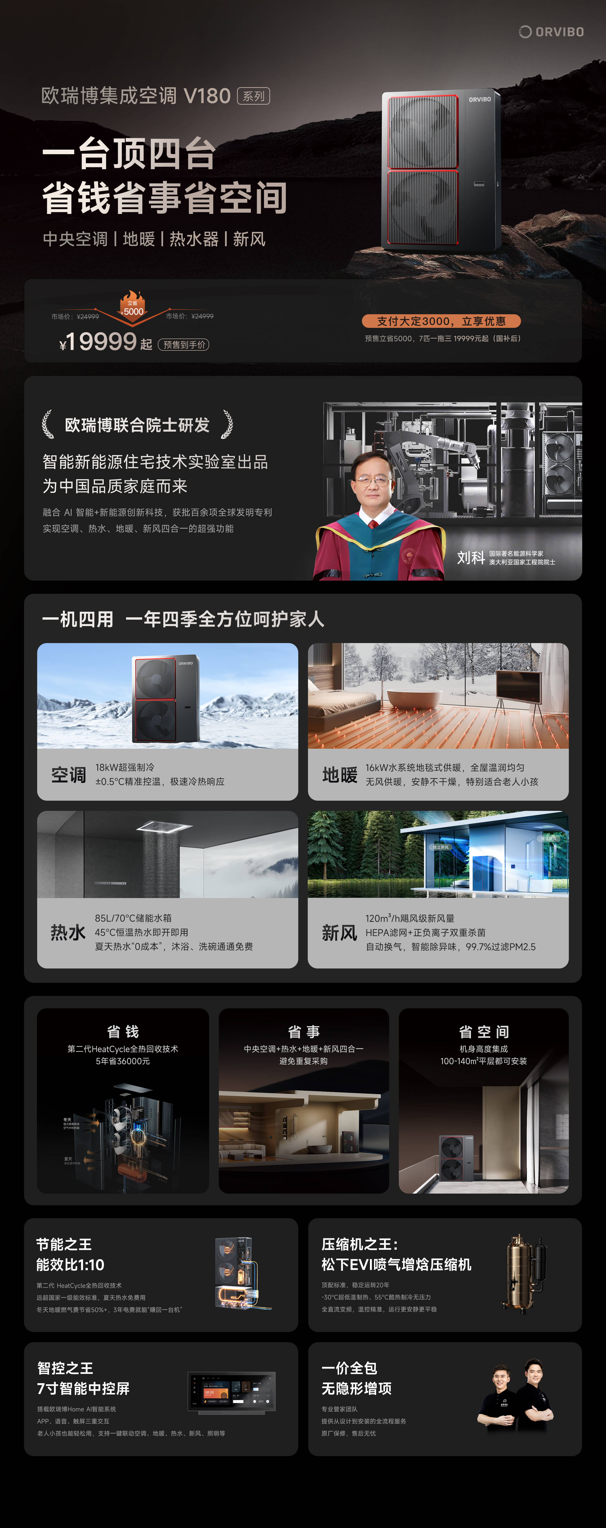 能源集成是欧瑞博集成空调的核心优势之一。其热回收技术在夏季制冷运行时,将压缩机产生的高温废热进行回收,用于免费制取全家所需的生活热水,直接实现了夏天热水免费,大幅削减了家庭热水费用。同时,相变储能技术(PCM)的应用让集成空调具备了热能电池的属性,它能够在电价低谷时段(谷电)储存冷/热能,并在高峰时段释放,有效利用峰谷电价差,实现智能省电。